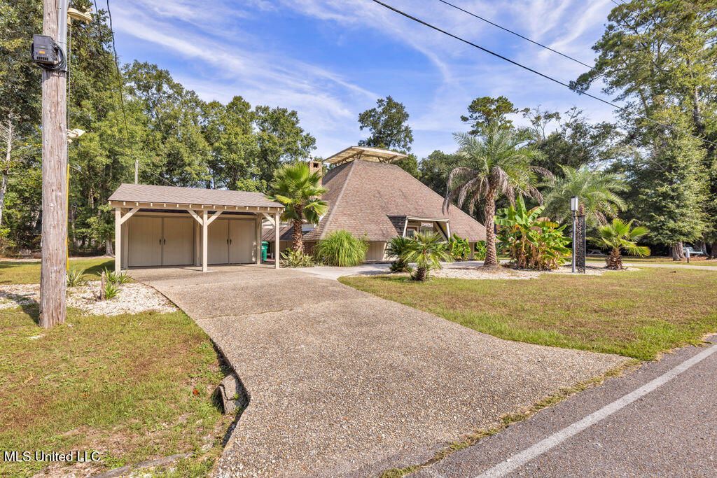 Tucked away on .7 acres (3 consolidated lots), this unique Polynesian-inspired home blends character, function, and charm. With 3 bedrooms, 2.5 baths, and an office area, it offers plenty of space for both everyday living and entertaining.Inside, you'll love the arched brick-column kitchen, custom-made interior shutters that add style while helping with energy efficiency, and a wood-burning fireplace beneath the soaring vaulted ceilings. The thoughtful layout also includes a pantry and a cozy office space for working from home. On the second flood, you'll find a flex space and a bedroom. At the very top of the home, you'll find a unique crow's nest?a cozy hideaway accessible by ladder, perfect for adding seating and string lights to create a one-of-a-kind hangout spot.Step outside to discover your own private retreat. The backyard features a fenced-in area perfect for pets or kids, a spacious yard with a fire pit and large picnic table for crawfish boils or gatherings. The acreage also offers the potential to subdivide and sell if approved by the city of Diamondhead. With a two-car garage and covered carport area, and all the charm of Polynesian architecture, this one-of-a-kind property offers both comfort and character in the heart of Diamondhead.When you're ready to explore, Diamondhead has it all: golf courses, restaurants, disc-golf, playgrounds, swimming pools, tennis courts, a kayak launch, and so much more. *Property may be eligible for short-term rental use; however, buyers and buyer's agents are responsible for verifying all requirements with the city. Official approval and proper permitting are required. Images depicting crowe's nest have been AI generated.*